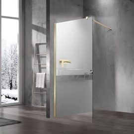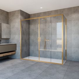 Душевые ограждения в брашированном золоте и вороненой стали – Alpha, Soft
