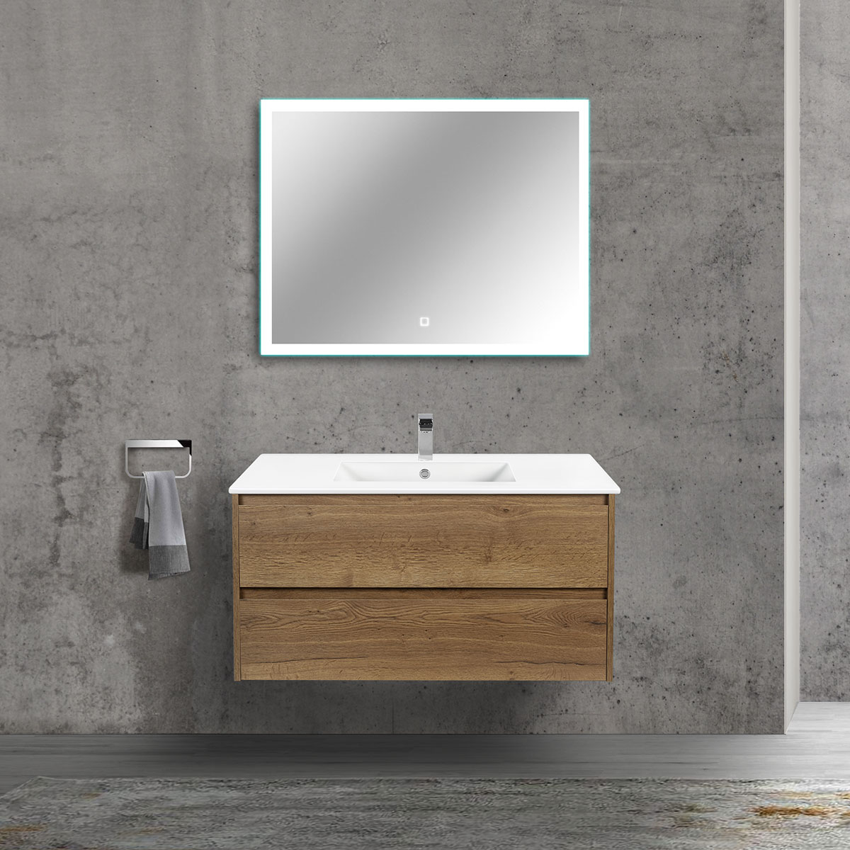 Серия Gio — тумбы в размерах 600, 800, 1000 и 1200 под керамическую раковину в отделках: SF.Oak (дуб винтаж) , G.Oak (серый дуб), T.Oak (дуб табак), C.Beton (бетон)