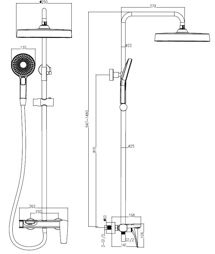 • Форма верхнего душа: