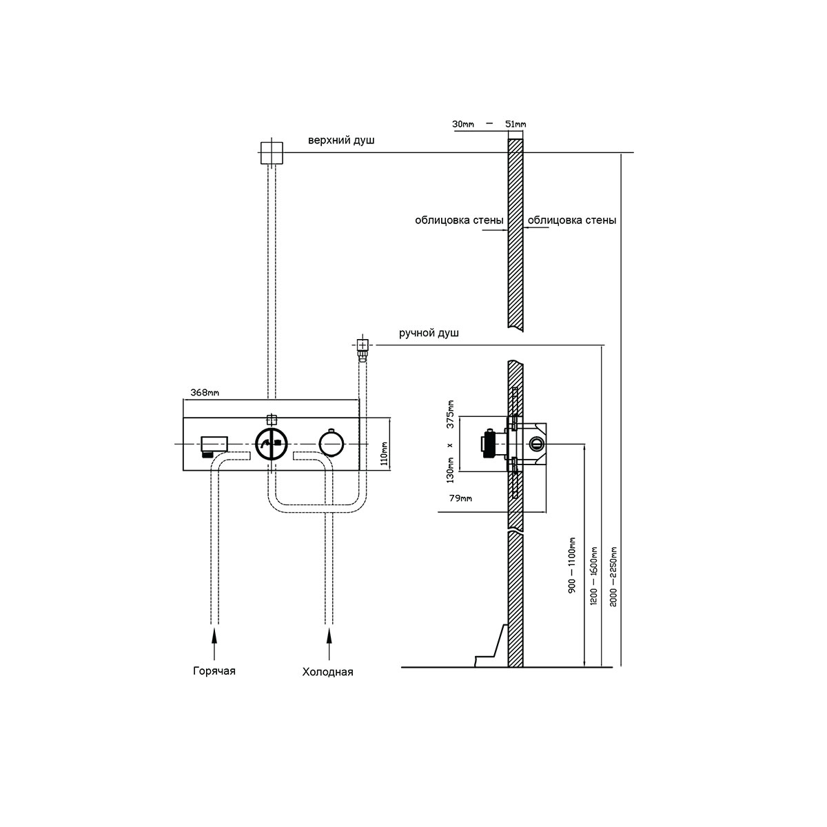 - Форма верхнего душа: