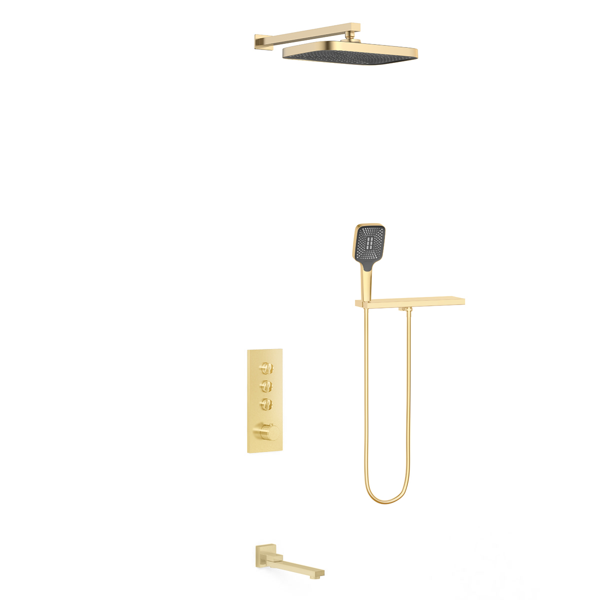 Верхний душ, полка с держателем ручного душа, ручной душ, смеситель со встраиваемой частью, излив