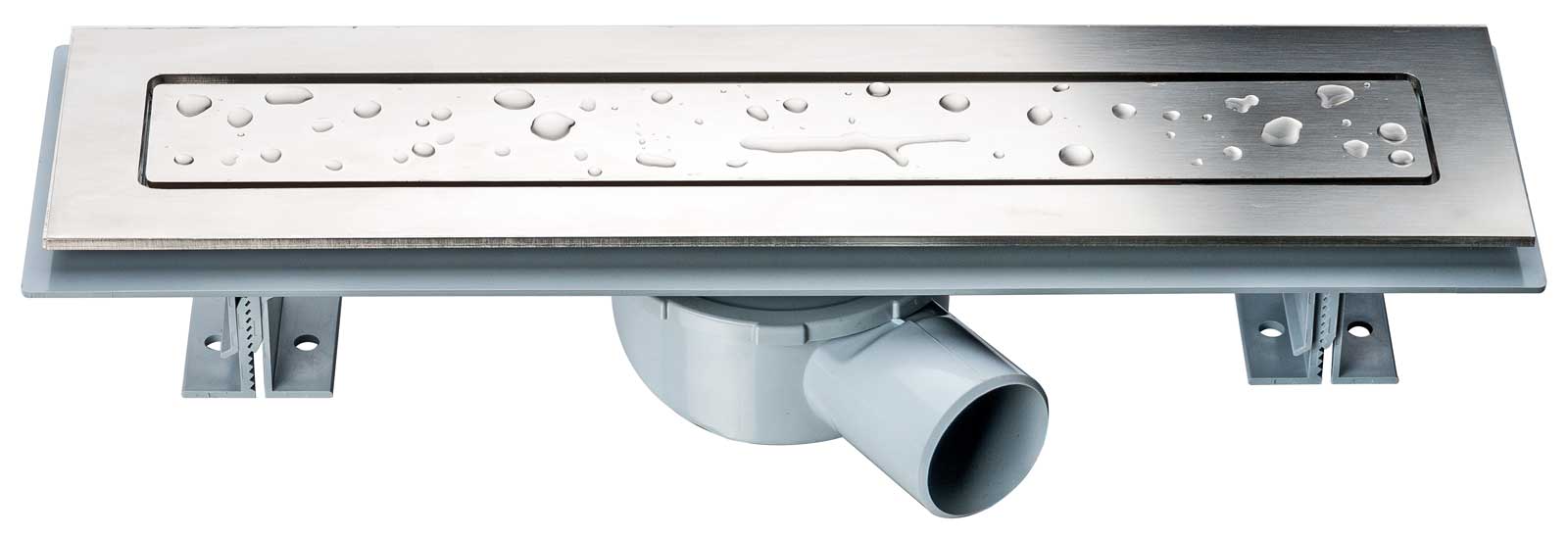 Поворотный сифон 360° из ABS-пластика, водонепроницаемые уплотнительные кольца, дренажный канал из ABS-пластика, противозапаховый затвор, водонепроницаемая мембрана, рамка и решетка из нержавеющей стали 2 мм, комплект регулируемых по высоте опор, пластиковый сервисный ключ, регулировочный винт из нержавеющей стали, регулировка соединения.