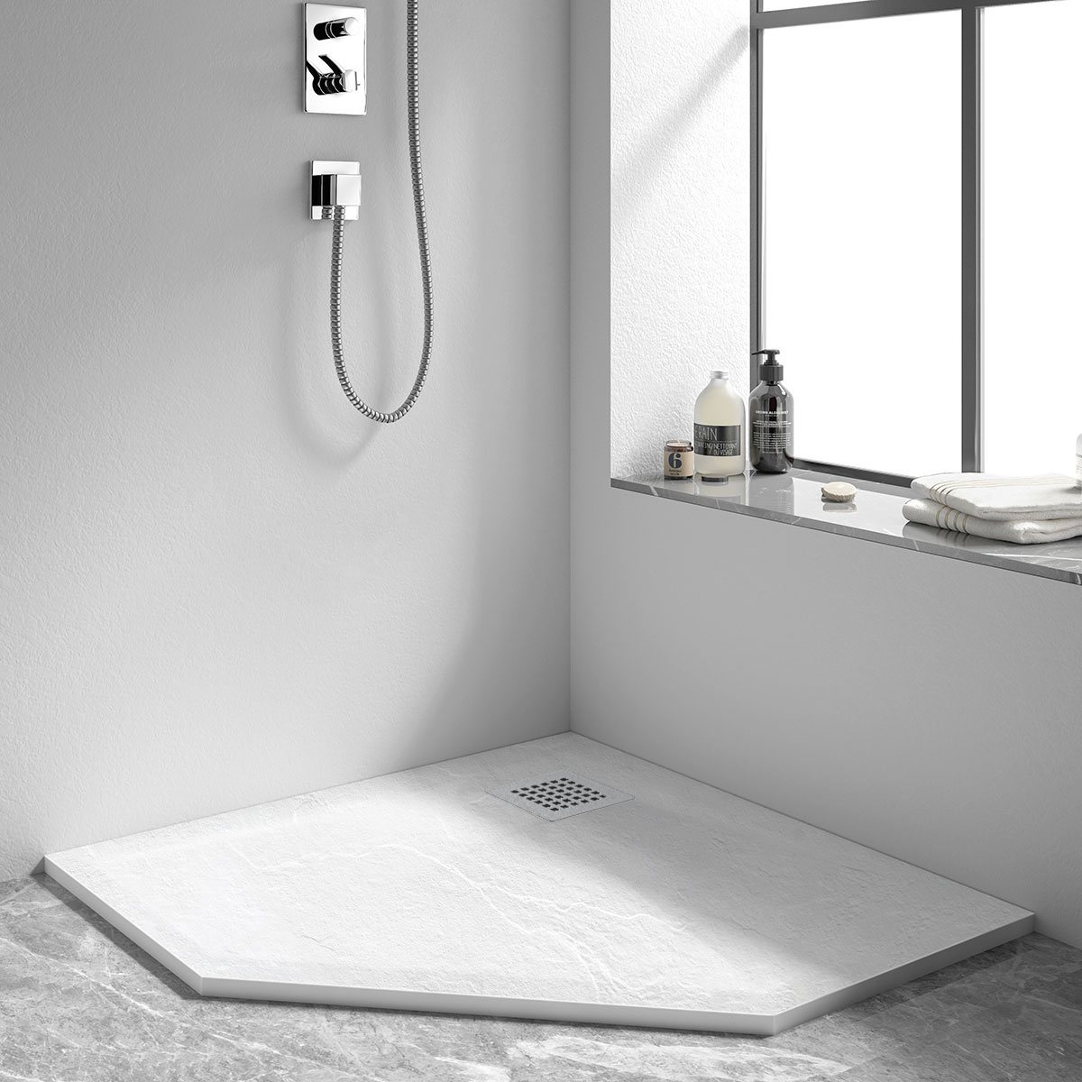 Поддон из камня, белый матовый