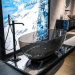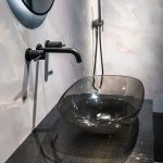 Прозрачная ванны из материала CrystalMood Vincea VBT-6T01B с напольным смесителем Desire VTF-1DMB однорычажным, с регулятором давления в черном цвете