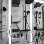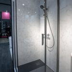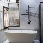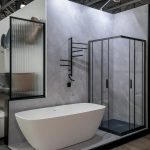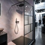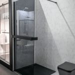 Душевая перегородка Walk-In HC art VSW-1HC-CFB, черный, стекло прозрачное/рифленое c встраиваемым душевым комплектом Groove VSFW-4G01MB в черном цвете