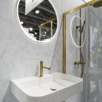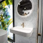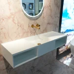Подвесная раковина Solid Surface Vincea VWB-6S212MW с встраиваемым смесителем Desire VBFW-1D1BG однорычажным в цвете брашированное золото