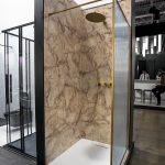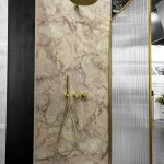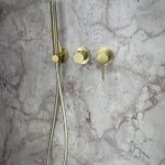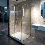 Душевая перегородка Walk-In VSW-1HP-FLBG, цвет брашированное золото, стекло рифленое с встраиваемым душевым комплектом Groove VSFW-4G01BG4 в цвете брашированное золото