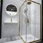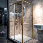 Душевой уголок Alpha VSS-3AL-CLG, профиль брашированное золото, стекло прозрачное с душевой стойкой термостатической Vogue VSFS-1V1TBG с изливом, цвет брашированное золото