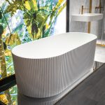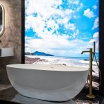 Ванна Solid Surface Vincea VBT-6S01MW с напольным смесителем Desire VTF-1DBG однорычажным, с регулятором давления, цвет брашированное золото