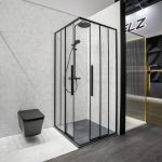 Душевой уголок Slim-N VSS-4SN-CLB, профиль черный, стекло прозрачное душевой стойкой термостатической Esse VSFS-1E0TMB в черном цвете