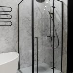 Душевой уголок Garda VSS-1G-CGB, черный, стекло тонированное с душевой стойкой Rondo VSFS-1R0MB, черный матовый