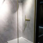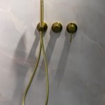 Душевая перегородка Walk-In VSW-1HS-CLG, брашированное золото, стекло прозрачное со встраиваемым душевым комплектом Groove VSFW-4G01BG4, брашированное золото