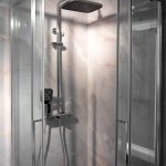 Душевой уголок Como Soft VSR-1CS-CLGM, вороненая сталь, стекло прозрачное с душевой стойкой с изливом Arco VSFS-4AR1GM, вороненая сталь